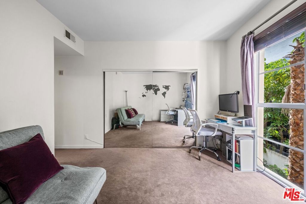 Unbeatable, Prime Westwood Location! This stunning 2 bedroom, 2.5 bath corner condo sits on a serene, tree-lined cul-de-sac, offering a quiet retreat just minutes from UCLA, a block from Westwood Park, and moments from the best shopping and restaurants in Westwood Village, Century City, and Beverly Hills. Inside, discover luxury with soaring high ceilings, hardwood floors, and abundant natural light. The floor plan is perfect for privacy, featuring two true master suites on separate ends. The main primary suite is a spa-like sanctuary, boasting a deep soaking tub and a separate glass shower, complemented by expansive, custom closet space plus an additional walk-in closet. The open-concept living area and kitchen lead to a spacious private balcony. The dining area adds an additional space for meals or an at-home workspace, depending on your lifestyle. Comfort is guaranteed with a brand new HVAC system and in-unit laundry. Secure living is afforded in this well maintained, small 14 unit building which includes an intercom-entry with gated parking and two tandem parking spaces. Perfect for first-time buyers, investors or natives to the area who want to live the quintessential Westside lifestyle!