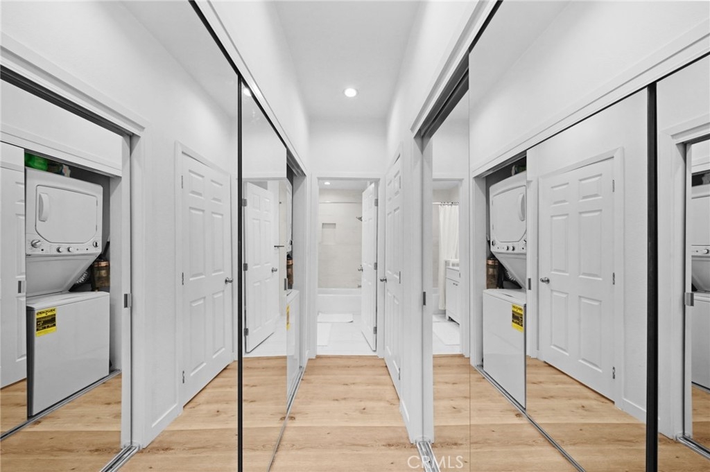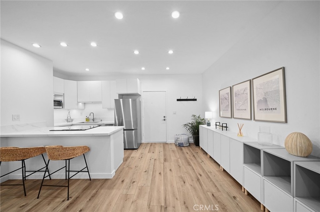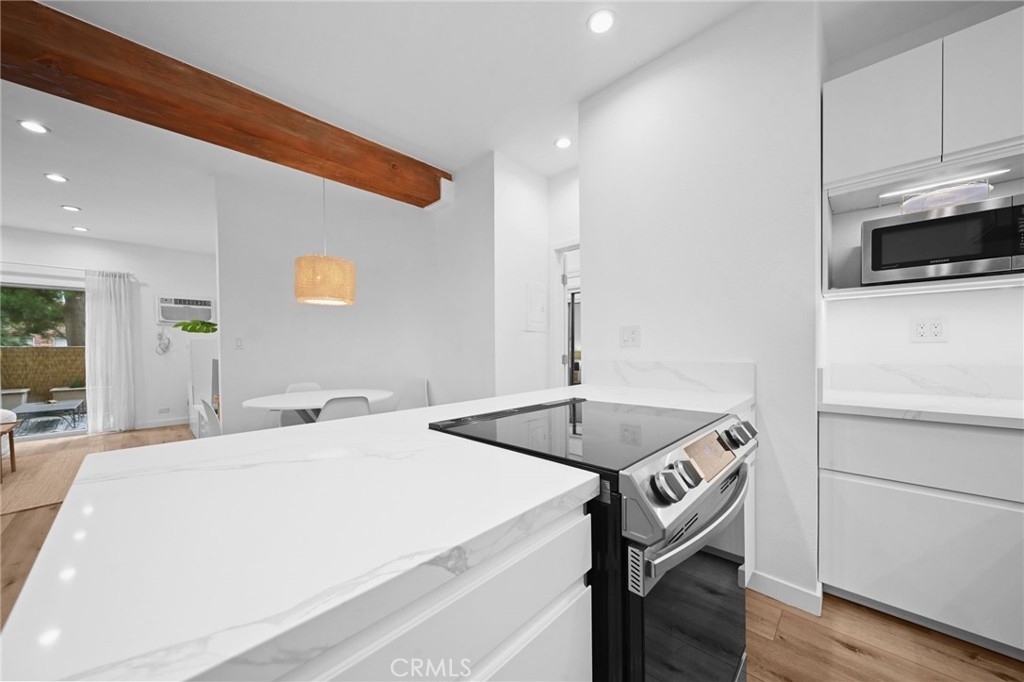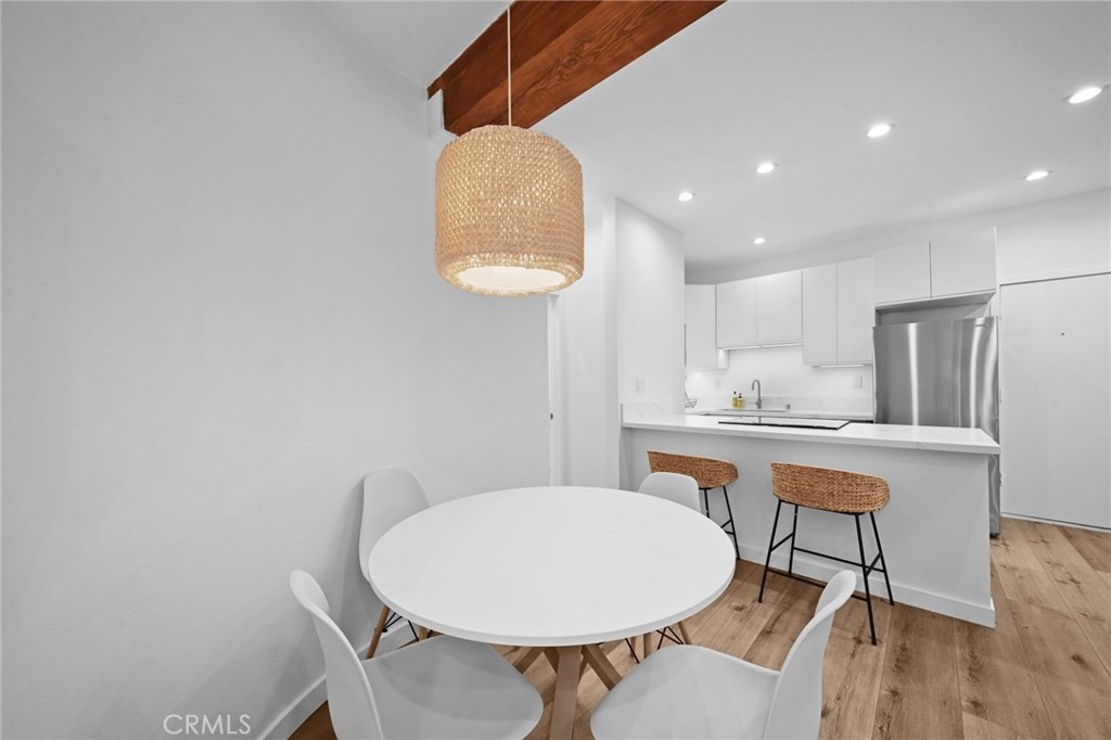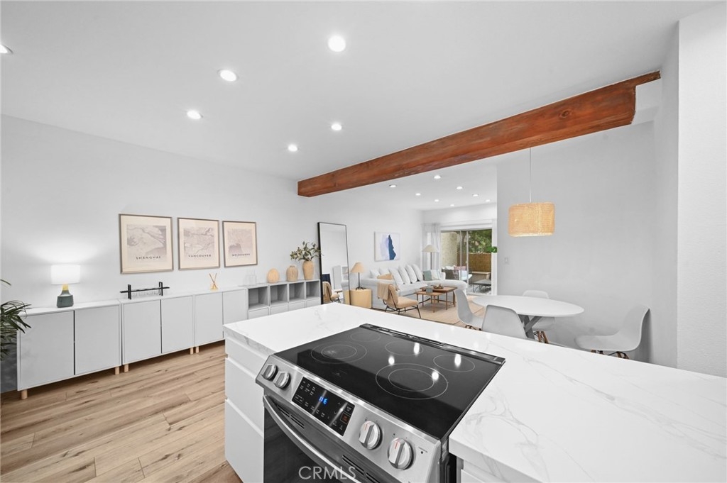 Discover the epitome of urban living in this stunning, fully remodeled 1-bedroom, 1-bathroom condo. This home, located in the heart of Westwood, offers the perfect blend of style, comfort, and convenience. Step inside to an inviting space featuring new flooring, stackable washer-dryer and fresh paint, and a modern kitchen with sleek design, soft-close drawers, under-cabinet lighting, and brand-new appliances. The spacious living area features a stylish open beam ceiling and recessed lighting, creating a warm and inviting atmosphere. Step outside onto your expansive 24x8 patio balcony, overlooking a serene courtyard with a koi pond and pool, providing the perfect escape. Residents enjoy access to a range of luxurious amenities, including 24/7 security, a state-of-the-art gym, a sparkling pool, a jacuzzi, a steam room, a redwood sauna, a conference center with a catering kitchen and separate lounge. Enjoy the convenience of on-site EV car charging and an assigned parking spot and bicycle storage. Directly across the street from The Colony is Westwood Park, offering tennis and basketball courts, soccer fields, and a dog park. With its prime location near UCLA, Westwood Village, Brentwood, Beverly Hills, and the future Purple Line subway station, you'll be just moments away from world-class dining, vibrant nightlife, and premier shopping. Don't miss this opportunity to own a piece of Westside paradise. Schedule your showing today!