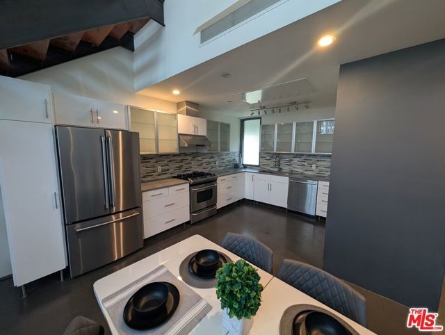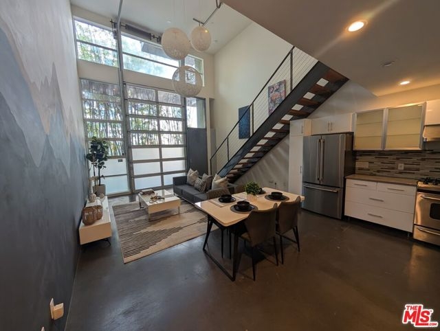 MAJOR PRICE IMPROVEMENT. Experience urban living at its finest in this stunning townhome-style loft, designed by award-winning architect Pugh Scarpa, AIA. Nestled in the vibrant Hollywood 2.0 district, this contemporary residence is a private and sophisticated urban oasis. The gallery-like living room impresses with 19-foot ceilings, sleek concrete floors, and an expansive glass garage doora defining feature of this dynamic space. When closed, the tinted glass ensures privacy and tranquility; when opened, it seamlessly extends your living area to a private patio, inviting fresh air and natural light. A bright and airy mezzanine on the second level offers the perfect home office, cozy den, or additional bedroom. The top-level primary suite is a true retreat, featuring floor-to-ceiling windows with breathtaking views of the Hollywood Sign. Located in the heart of Hollywood's thriving scene, enjoy unparalleled access to Equinox, Trader Joe's, NeueHouse, and the Arclight Theater. Plus, with the Metro Red Line and 101 Freeway just minutes away, commuting is effortless. Come see this exceptional home for yourself - urban luxury awaits!