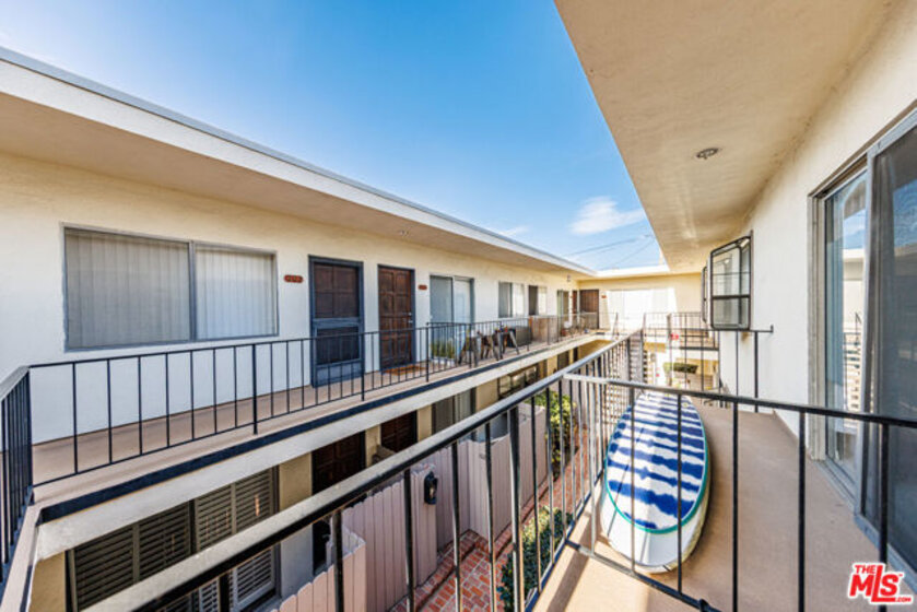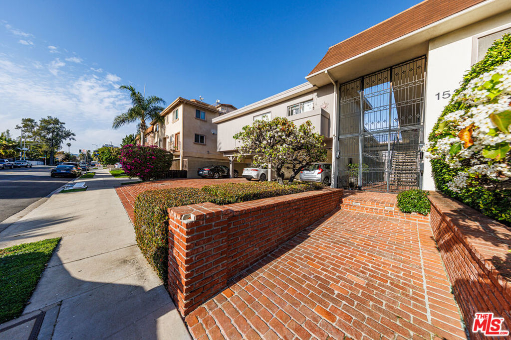 Quiet front of building two-bedroom, 1-1/2 bath conveniently located right on the border between West LA and Santa Monica, with close access to shopping, dining, and other entertainment. Building has security gate and phone operated entry. Parking is covered and has security gate as well, controlled by clicker. Ceilings are approximately 12 feet, giving a spacious and open feel. Two generous bedrooms. Both bedrooms have walk in closets. There is a large storage closet in the living room and a linen closet near the bathroom. Additional locked storage in front parking area. Corner unit with three-sided exposure that has excellent cross-breeze. Balcony off of primary bedroom had its floor redone in 2025. Unit is part of a cozy 16-unit complex with most of the units customized (this one has the extra half bath in the primary bedroom). Hand-laid tile floors in kitchen and bathrooms. Contributing to the sense of privacy is the fact that closets line the only shared wall between this unit and the one next door. Building has keyed community laundry room located in the garage. Just needs some refreshening to be an ideal first home.