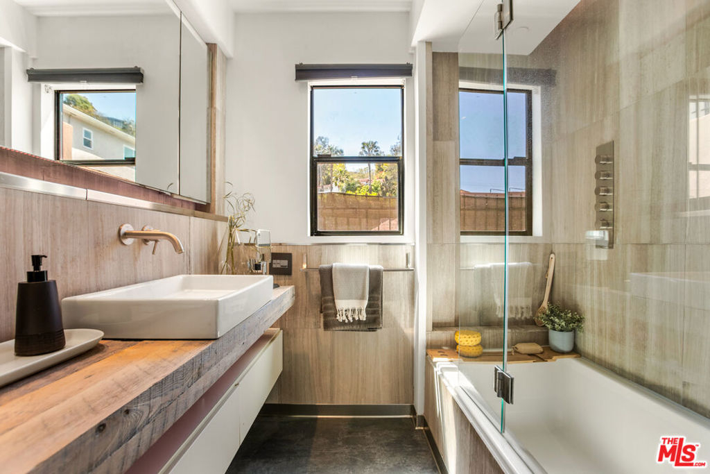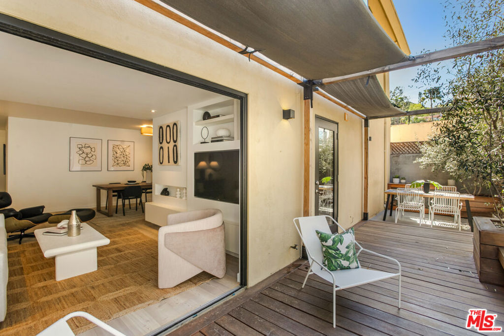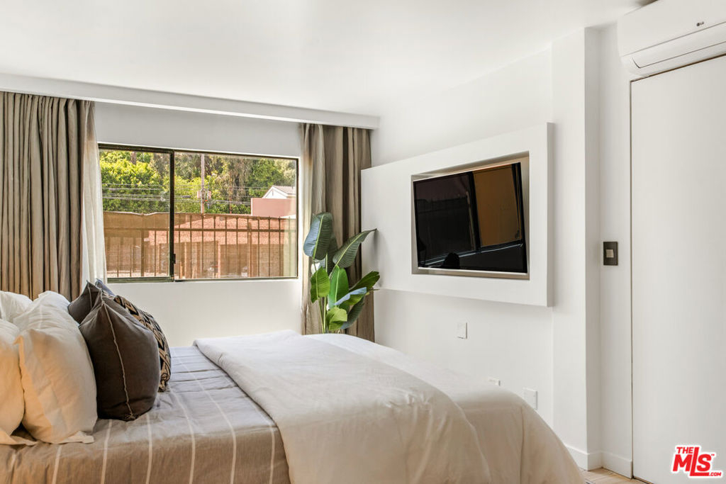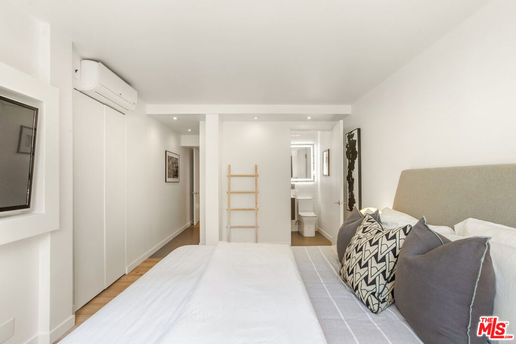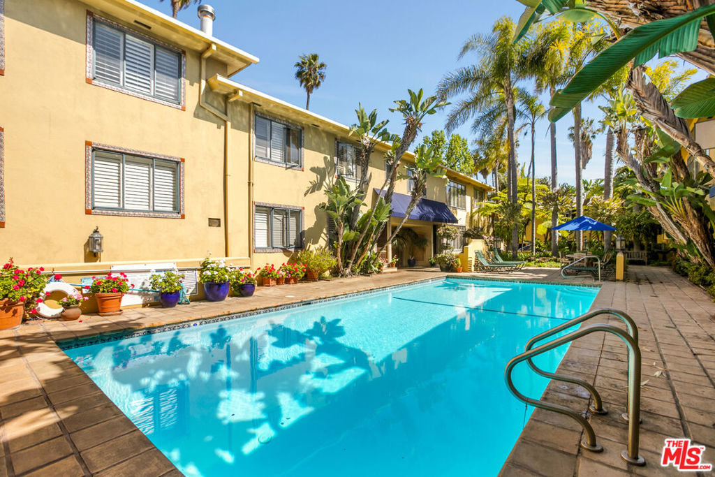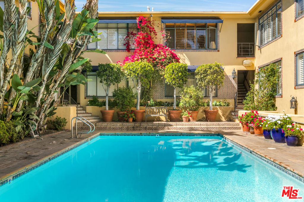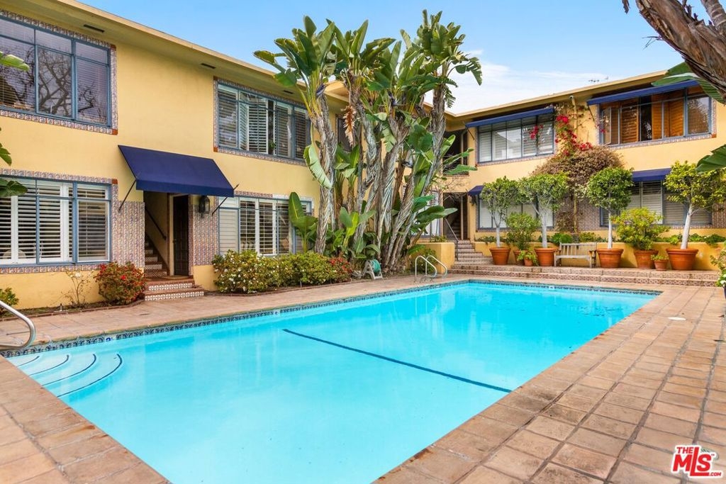 Okay, stop what you're doingI just found the one for you. Picture this: a 1950s Spanish courtyard pool building straight out of an old Hollywood movie. I swear, you'll walk in and immediately feel like you should be drinking espresso in silk pajamas while a record plays in the background. It's a rare find in this dreamy setting with 2 bed, 2 baths and a smart layout, bedrooms on opposite sides so you're not on top of anyone, great for guests or or make it that meditation room you put out into the universe recently. The kitchen is very Euro cafe energy and the bathrooms? Spa vibes, like light-a-candle-and-disappear-for-a-while-level. Oh and keep it cool or hit the heat with the new multi zone mini split system. And the architectural vibes? So good. Built-in coves in the walls and ceilings--like little curated moments. Totally gives "I have taste" without even trying. And then get this, the living room opens up completely with these folding glass doors to your own huge private patio. Built-in bench seating, room for dreamy outdoor dinners, and olive trees! Literal olive trees. You'll be barefoot, sipping wine, pretending every day feels like a vacation day. Better yet, get into vacation mode as the front door is literally steps from the pool. Like, wake up, slide on your sunglasses, and romanticize your whole life here.