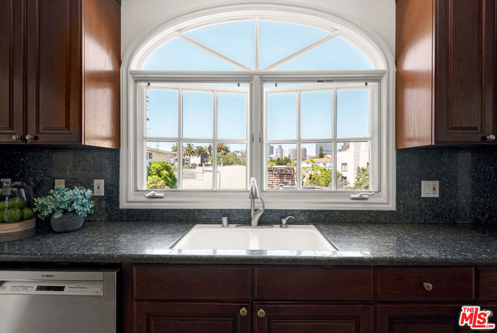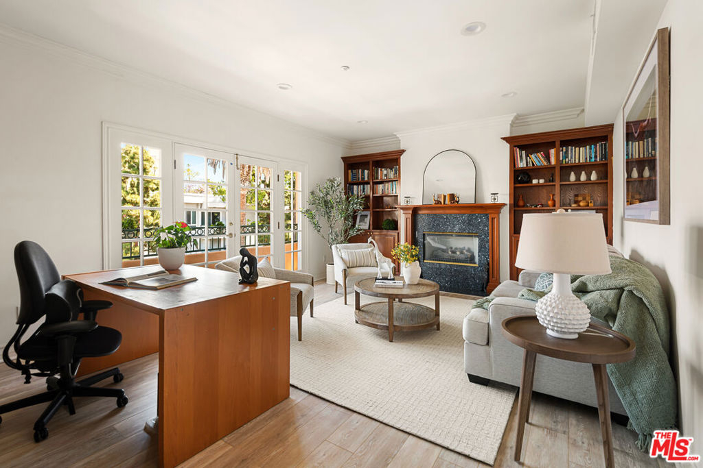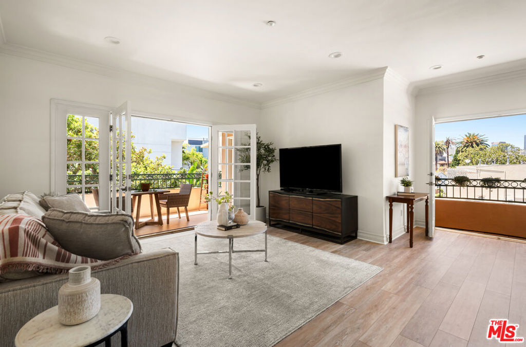 This unique penthouse occupies the entire top floor of a very well located condominium building in the heart of Westwood. The expansive 3 bedroom, 2.5 bath residence offers exceptional privacy, scale, and sweeping wraparound city views. With exclusive direct, key-controlled elevator access opening into its own private foyer, the home lives like a true sanctuary flooded with natural light from every angle. From the foyer, a gracious double door center entryway invites you into this exceptional unit that features no common walls and windows on all sides. Spanning approximately 2,240 square feet with the addition of four balconies, the thoughtfully updated interior features new flooring, oversized bedrooms and abundant storage. The living room expands through glass doors onto a spacious balcony. The full-sized dining room also has a balcony and room for entertaining large parties. The versatile den with fireplace and built-in bookshelves provides the perfect space for a home office or additional living area. The chef's kitchen features stainless steel appliances and a double oven. The primary suite has a spa-like bathroom and a walk in closet. There is a spacious utility/laundry room. Four large balconies significantly expand the living space, creating seamless indoor-outdoor flow and maximizing the home's open very bright ambiance. The residence is located in the highly sought-after Fairburn Avenue School District and is just moments from Beverly Hills, UCLA, and the 405. The unit includes three assigned parking spaces in a gated garage, a rare and valuable amenity in this prime location. Enjoyment of the rooftop deck is a bonus. A truly exceptional opportunity to own a private, light-filled penthouse occupying the entire top floor in one of Westwood's most desirable neighborhoods.