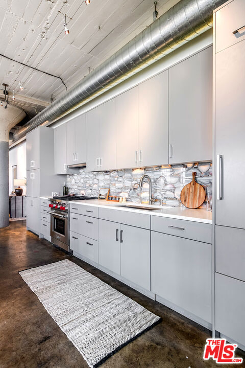Recently reduced and priced to sell! Enjoy life in DTLA's Arts District Toy Factory Lofts in this rarely available entertainers dream. A 2,000 SF NW corner loft is a light and bright open living space with wrap around, oversized, industrial style windows that provide unobstructed views in all directions including the DTLA skyline, the San Bernardino Mountains and the newly built, iconic, 6th Street bridge. The loft includes two open bedroom areas and two full bathrooms. An upgraded kitchen provides top of the line appliances including a Wolf gas range, Subzero refrigerator, filtered water system, custom stone counters and eat-in kitchen bar. There is a steam shower and upgraded lighting throughout to highlight an art collection. Full building amenities include: secured lobby with 24-hr doorman, rooftop pool with sun deck, cabanas, fire pit, additional 3rd floor common deck offers extensive green space, BBQs, eating areas and a two story gym. A tandem parking space for two cars is included in the attached, private garage. The building is a stone's throw to Hank's organic market, Cameila, Bestia, Bavel, The Soho House, Factory Kitchen, The Bike Shed Moto Co, Hauser & Wirth Gallery and much more! Much to enjoy in this vibrant neighborhood!