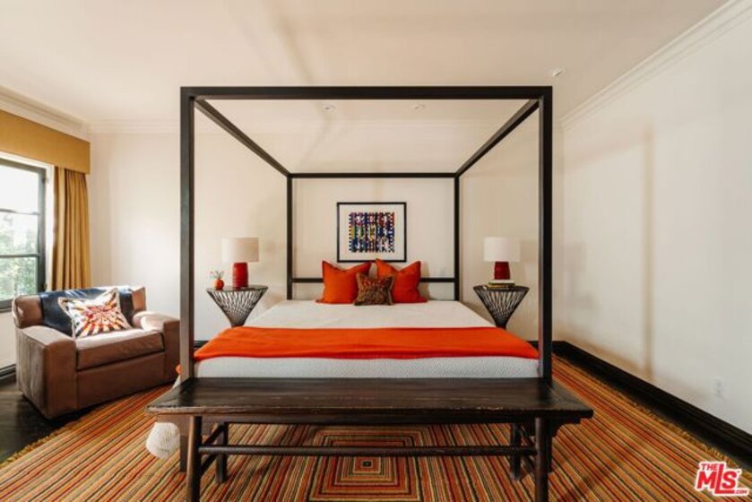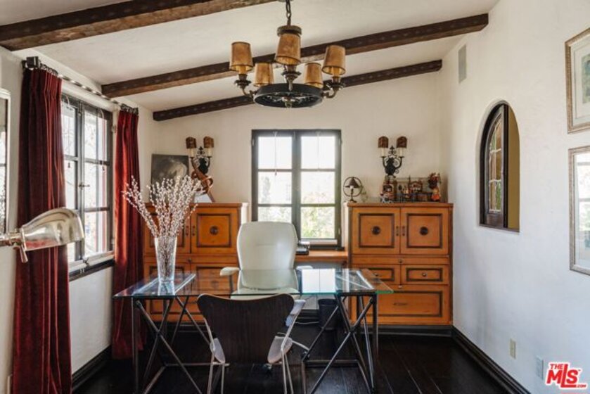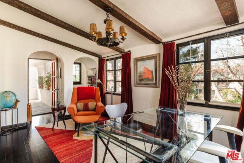 Situated on one of Hancock Park's most coveted tree-lined streets, 200 South Mansfield is a rare, renovated 1928 Spanish Colonial Revival that perfectly balances historic soul with a contemporary feel. While technically a condo, this designer-done residence lives like a single-family home, offering the high-end luxuries you actually want - including a built-in Miele espresso machine for your morning fix. The iconic turret entry and red-tiled roof set the stage for over 3,450 square feet of scale, marked by soaring ceilings, arched doorways, and warm hardwood floors. The formal living room, anchored by a working fireplace and a classic stained glass window, is made for hosting, while the large den with exposed wooden beams offers a more relaxed, moody vibe. The layout is a dream for the modern "live-work" lifestyle, featuring a dedicated office, a formal dining room, and a sun-drenched breakfast nook. The primary retreat is a total escape, complete with dual closets and a Juliet balcony overlooking the stone-rimmed pool. Outside, the gated lot is wrapped in tall hedges for total privacy, creating a hidden oasis in the heart of the city. You're just a short stroll from neighborhood favorites like Sycamore Kitchen, Republique, Sugarfish, and American Rag, and a quick drive to Larchmont Village. Located in the top-rated Third Street Elementary district, this is a rare chance to own a piece of architectural history in one of LA's most iconic pockets.