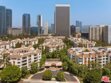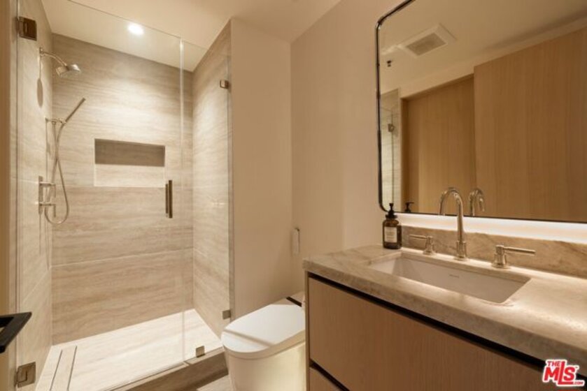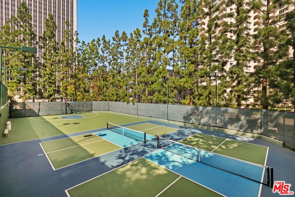 Rare Top Floor High Ceiling fully remodeled 3-bedroom, 2.5-bath residence with dual balconies the exclusive Century Park Place, a lush 14-acre, low-rise complex with 24-hour guard-gated security, three pools, tennis courts, a dedicated fitness center, and sauna, just moments from Rodeo Drive and Westfield Century City Mall. Every detail reflects a design-forward vision executed with lasting functionality and exquisite taste. Italian oak floors, a wood-paneled entryway wall, and soaring ceilings with architectural recessed lighting set the tone the moment you step inside. The kitchen is perfected by natural light pouring through breakfast nook windows, bathing custom Italian designed cabinetry, full Miele appliances, built-in beverage refrigerator, and imported Calacatta countertops that extend seamlessly up the backsplash. A complementary wet bar in the adjacent dining room mirrors the stone counters and cabinetry, completing the intention. Twenty-two-foot ceilings and sliding glass walls give the great room its heart, anchored by a travertine corner fireplace with direct balcony access. The primary bedroom frames views of the Hollywood Sign, Griffith Observatory, and the Hollywood Hills, with balcony access, a custom Large Italian designed walk-in closet, and a spa bathroom featuring dual sinks, freestanding tub, travertine tile walk-in shower, frosted glass water closet, and cove ceilings with custom lighting. Two additional bedrooms offer custom closets, solid wood doors, motorized shades, and sliding glass doors to the balcony. One en-suite and a powder room are finished in butterfly-matched Taj Mahal stone slabs, contrasting white oak, Phylrich hardware, and automated smart toilets. The large laundry room features a full size LG washer dryer (Vented) with matching stone countertops and custom cabinetry.The residence is fully equipped with Nest smart home heating and cooling, motorized shades, Lutron lighting, remote-accessible deadbolt, Ring security, built-in speakers, brand-new HVAC, Italian wood flooring, non-toxic eco paint, and a completely rewired electrical system. Nothing spared, this home is built to enjoy every day and last a lifetime.