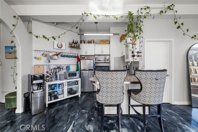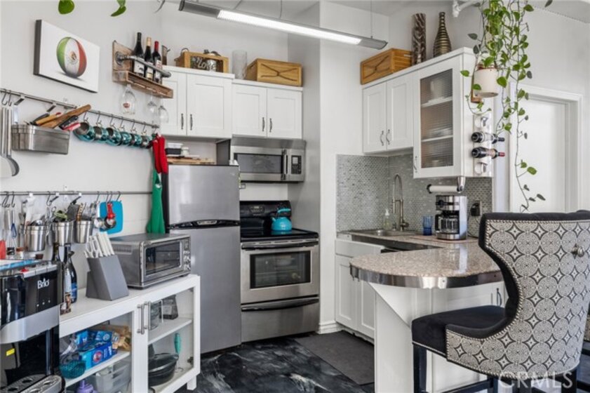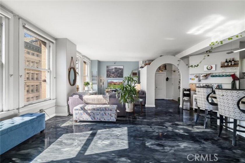 This exceptional corner unit offers a bright and inviting living space, defined by its expansive windows that flood the home with natural light and showcase soaring high ceilings that enhance the sense of openness. The modern epoxy flooring adds a sleek, contemporary touch, seamlessly tying together the living, dining, and kitchen areas. Thoughtfully designed for convenience, the unit includes an in-home washer and dryer, making laundry effortless and efficient. Residents benefit from deeded parking, ensuring a secure and easily accessible spot in the heart of the city. Beyond the unit, a large rooftop common area provides a serene retreat with ample space for relaxation, entertaining, or enjoying panoramic city views. This home harmoniously combines style, functionality, and comfort, offering an unparalleled urban living experience that caters to both everyday life and memorable gatherings.