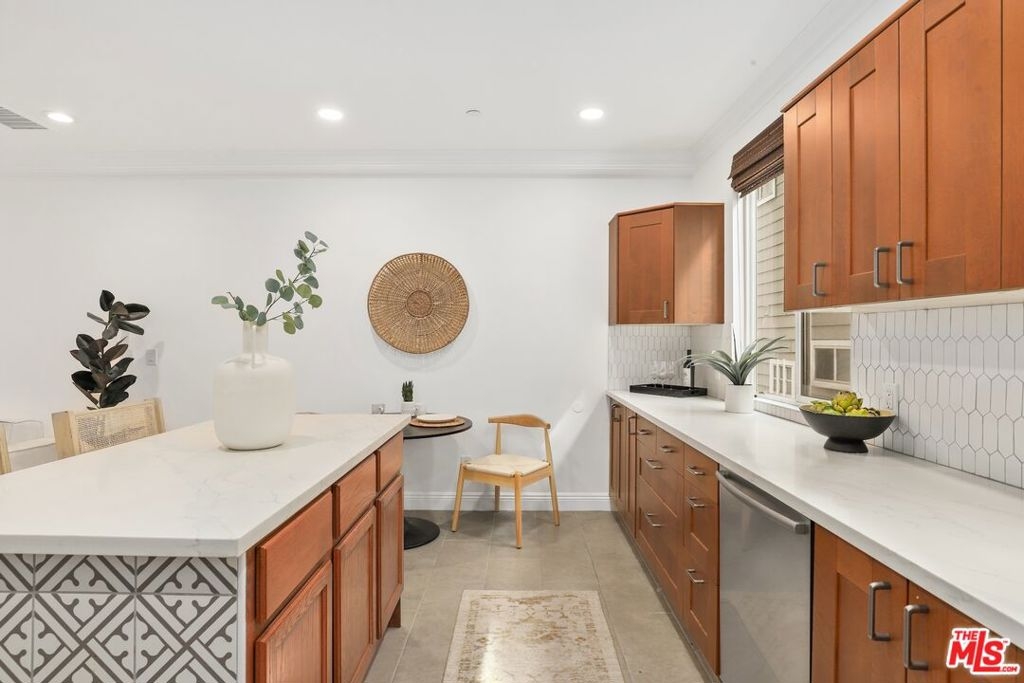 Welcome home to this stunning three-story townhouse featuring a spacious private rooftop deck with treetop and city views, your own elevated retreat above the Westside. With no neighbors above or below, this residence offers the privacy and feel of a single-family home paired with the convenience of townhome living. The open-concept main level is designed for both everyday comfort and effortless entertaining. A beautifully renovated kitchen flows seamlessly into the dining and living areas, highlighted by high ceilings that enhance the sense of space and light. A guest powder room and private balcony complete this inviting floor. Upstairs, both generously sized bedrooms feature ensuite full bathrooms, an ideal layout for privacy, guests, or roommate living. The primary suite offers high ceilings, a large walk-in closet, and a spa-like bathroom complete with a jacuzzi soaking tub. Thoughtful touches throughout the home include excellent storage and a Nest temperature control system for modern comfort and efficiency. End your days on the rooftop deck soaking in sunset skies and ocean breezes perfect for relaxing, entertaining, or enjoying your own peaceful escape. Ideally located on the Santa Monica Los Angeles border, this home delivers exceptional Westside convenience and lifestyle. Just a 10-minute drive to the beach, three blocks to the Metro, five minutes to Clover Park, and moments from the cafes and restaurants along Ocean Park Blvd and Pico. Trader Joe's is just two blocks away, and LAX is approximately 20 minutes, making commuting and travel effortless. This is privacy, space, and location all in one of the Westside's most connected neighborhoods.
