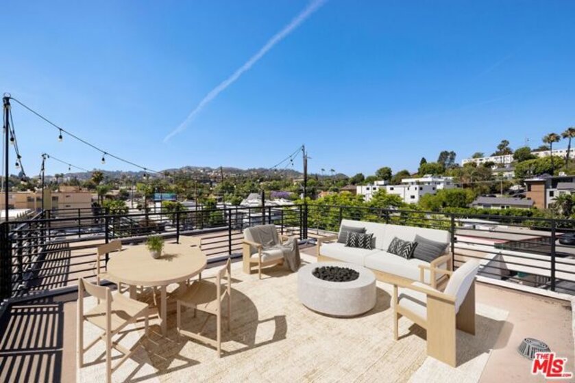 Modern, light-filled townhome living in the heart of Silver Lake, this beautifully designed 3-bedroom, 3.5-bath residence spans approximately 1,898 square feet. A private street-level entry leads into a flexible ground-floor bedroom suite, ideal as a guest room, office, or studio, while the main level opens to an airy great room designed for effortless entertaining. The chef's kitchen features quartz countertops, white shaker cabinetry, stainless steel appliances, a center island, and a walk-in pantry, complemented by a powder room for guests. High ceilings, recessed lighting, and abundant natural light highlight the home's clean, modern finishes throughout. Upstairs, all three bedrooms are ensuite, including a serene primary suite with a walk-in closet and dual-vanity spa bath. Three distinct outdoor spaces elevate the lifestyle offering: a balcony off the living room, a second balcony on the bedroom level, and a private rooftop deck with sweeping city and mountain views. Additional features include in-unit laundry, central A/C and heat, a tankless water heater, water softener, and an attached two-car garage with direct entry. Ideally located just moments from Ivanhoe Elementary and Trader Joe's, Gelson's, Hyperion Avenue's shops and restaurants, the Silver Lake Reservoir, and Sunset Junction.