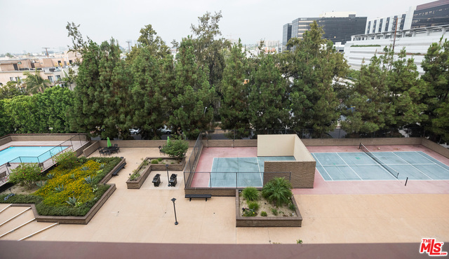Great starter condo that's ready to move into but with lots of room to update and make it your own. This 2 bedroom - 2bath unit has a large balcony off the living room facing the sunsets in the west and city views. Kitchen has breakfast bar and pass thru to living area. Spacious master bedroom with lots of closet space. The 2nd bedroom also has good closet and across the hall from full bath. Unit has new ceramic plank floors, central heat & air, 2 car tandem parking and community laundry on the unit floor, plus complex has pool, tennis court and paddle tennis. Great location across the street from Beverly Center, Cedar Sinai Hospital and centrally located between West Hollywood & Beverly Hills.