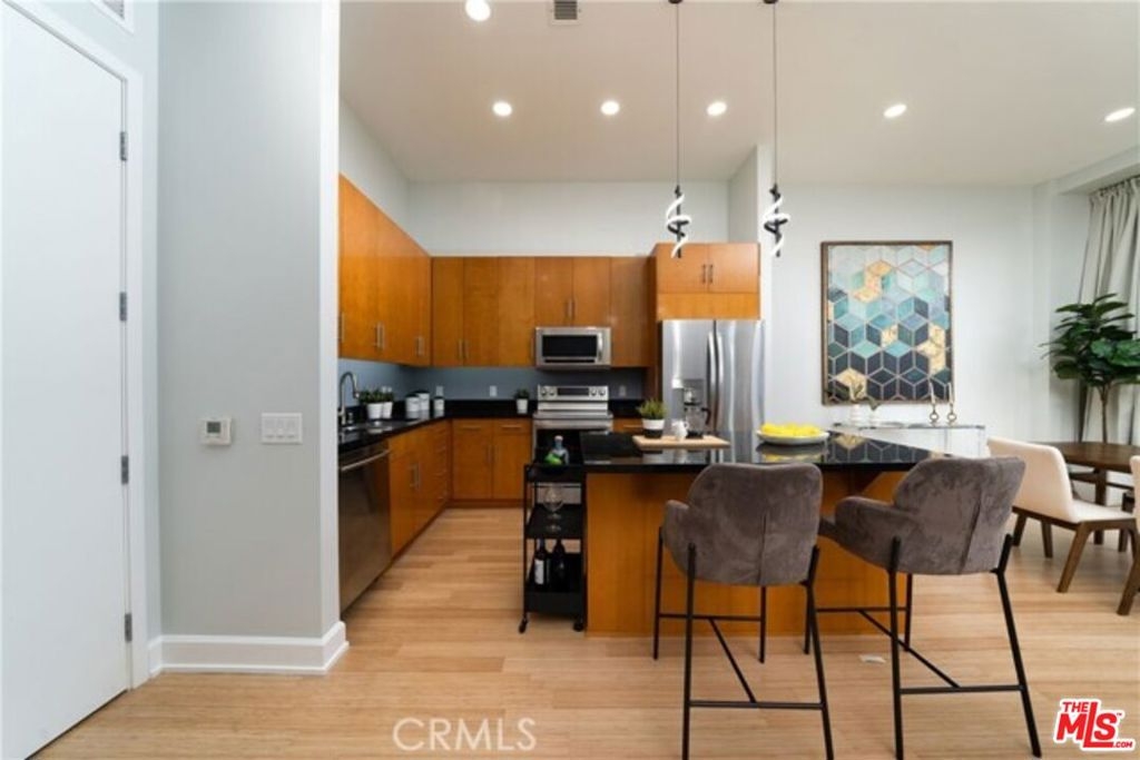 VIEW! VIEW! VIEW! Bright 8th floor high rise unit with sweeping city views, abundant natural light, and a comfortable, open layout perfect for everyday living. Located in the prestigious Summit on Sixth, this luxurious 1,490 sq. ft. high-rise condo in Koreatown offers the perfect blend of elegance, convenience, and modern design. Perched on the 8th floor, this spacious one-bedroom, two-bathroom unit boasts soaring 11.5 ft. high ceilings and floor-to-ceiling dual-pane windows, flooding the space with natural light and offering breathtaking city views with its own private balcony. The open floor plan, hardwood floors, and granite countertops complement the sleek, contemporary design, while the expansive bedroom suite includes a walk-in closet and a spa-like master bathroom. Residents enjoy 24-hour security, concierge service, a state-of-the-art fitness center, sauna, spa steam rooms, and even a virtual screen golf system. Located just minutes from Downtown LA, Beverly Hills, and The Grove, and steps away from the Wilshire/Vermont Subway Station and Chapman Plaza, this unit is both a serene retreat and an entertainer s dream. HOA covers cable, internet, water and trash, security, and more, and two underground gated parking spots are included. Experience the best of luxury high-rise living in the heart of Koreatown!