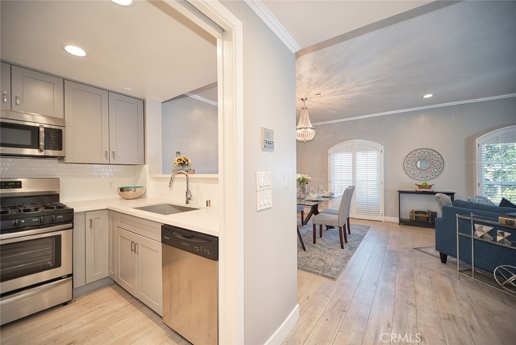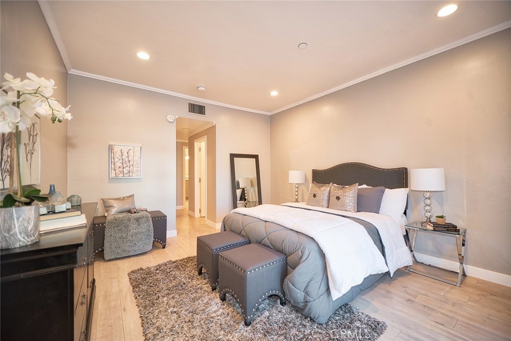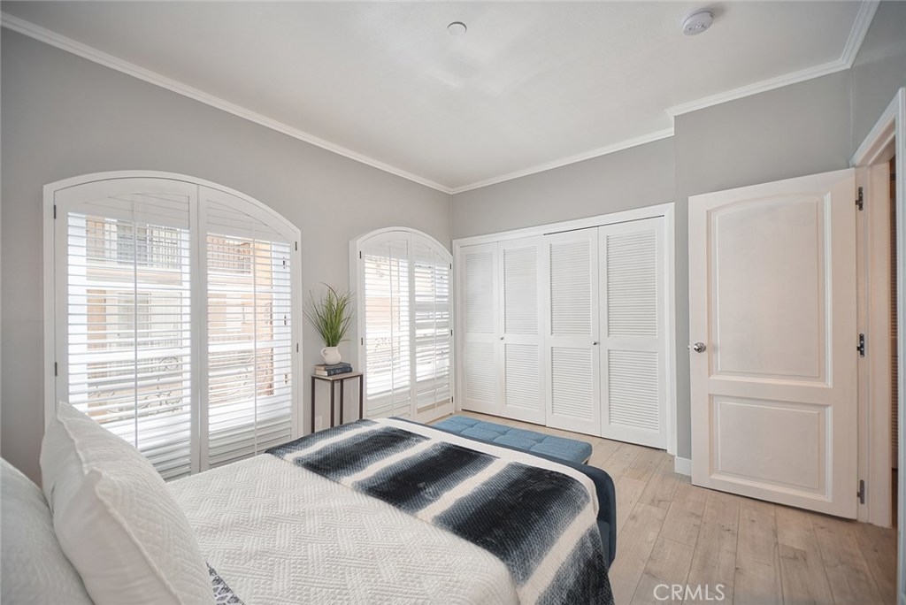 Stunning European-Style 16 unit building in a very desired location! Remodeled home front-facing corner 2 bedrooms 2 baths. This residence features a formal entry hall, gas fireplace, washer and dryer hook-ups inside the unit. The kitchen has been remodeled with new cabinets, appliances, sink and much more. Details include high ceilings, crown molding, French doors & windows, shutters, master suite has bay French windows, 2 walk-in closets, double sink, separate bath & shower and linen closet. Light & bright, excellent to entertain family and friends. The building also has a Gym. Close to Robertson, 3rd Street, Beverly Center and a stroll to Beverly Hills where you will find some of the finest restaurants and shops.