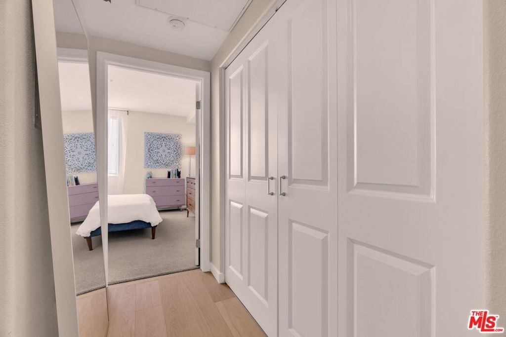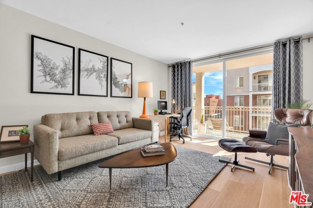 Experience the perfect blend of style, convenience, and modern living with this 1 bed plus 1 bath gem located in the heart of the vibrant Bedford Promenade community. Perched on the 3rd floor, this corner unit offers privacy with minimal shared walls, and an enviable lifestyle, complete with 2 dedicated side-by-side parking spaces and your very own EV charging outlet in the gated parking structure with elevator access. This thoughtfully designed floor plan maximizes every inch of space. Recently updated with chic, contemporary touches, this home features gorgeous new white oak hardwood flooring, a sleek granite kitchen with a spacious island, and new stainless-steel appliances. The newly remodeled bathroom boasts upscale finishes, while the custom closet storage solutions and in-unit washer & dryer (a modest $40 extra monthly HOA fee applies) add practicality to everyday living. A newer HVAC system with a smart thermostat keeps your comfort just a tap away, whether you're home or on the go. The affordable $500 monthly HOA fee also includes water, trash and all exterior maintenance. Relax on the oversized balcony, where serene views of the meticulously maintained common areas and sparkling pool await. The building itself is brimming with additional resort-style amenities to take advantage of including the fitness center and a community room equipped with a pool table that is perfect for entertaining friends or unwinding after a long day. This condo is ideally situated amidst exciting new developments like the upcoming Stocker Street Creative (a state-of-the-art film studio campus) and the Baldwin Hills Mall redevelopment featuring trendy dining and shopping options. It's also minutes from SoFi Stadium, LAX, and neighborhoods such as Leimert Park, Culver City, Ladera Heights, and the Westfield Mall (with Trader Joe's!). For commuters, the proximity to the Metro K-Line station (just .25 mile away) and the Expo/Crenshaw station (1.5 miles away) offers easy access to Downtown LA and beyond. Super clean and move-in ready, this stunning condo is your chance to enjoy spring and summer by the pool while basking in the comfort and convenience of a modern home in a prime location. Don't miss this rare opportunity to own a slice of LA living at its finest.