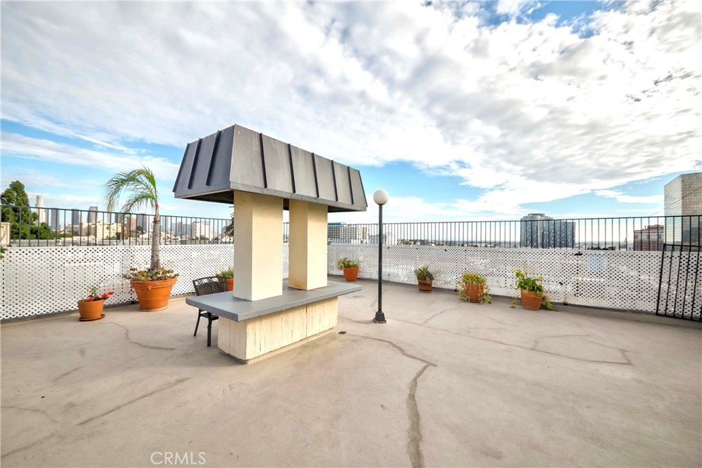Welcome to Lafayette Park Towers, a beautifully remodeled one-bedroom, one-bathroom condo offering modern comfort and convenience in the heart of Los Angeles. This spacious unit features new flooring, an upgraded kitchen, an updated bathroom, multiple closets including a walk-in, a separate dining area, a cozy den with a fireplace, and an oversized balcony that opens to a garden area. Additional recent upgrades include a new air conditioning unit (cooling and heating system), a new ceiling fan in the living room, new closet doors, a digital door lock and digital doorbell, and a Bosch dishwasher, all installed within the past two years. The built-in microwave is a new model connected to the range hood, and a water filtration system has been installed under the kitchen sink, providing clean, filtered water directly from the tap. The building provides secure entry with a lobby, elevator access, onsite management, and evening security staff. Residents can enjoy a rooftop pool and Jacuzzi with breathtaking views of Downtown LA, along with a gym, spa, laundry facilities, and one gated parking space. HOA dues include water, gas, trash, and building maintenance for added convenience. Perfectly located less than two miles from Downtown LA, USC, and the Staples Center, this home is also within walking distance to MacArthur Park, shops, restaurants, and groceries, with easy access to Koreatown, public transit, and major freeways. This condo offers the ideal blend of style, location, and value—perfect for a professional or couple looking to enjoy city living at its best.