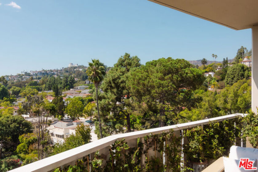 The iconic Los Feliz Towers. This rare northwest corner unit offers a rare expression of modernist simplicity and elevated city living. Designed to celebrate light, clean lines, and uninterrupted vistas, the home creates a seamless dialogue between indoors and out. From sunrise over the Los Feliz Hills to golden-hour views of Griffith Observatory, every moment feels cinematic. Floor-to-ceiling Arcadia glass doors extend the living space onto a wraparound terrace overlooking lush gardens and the heated pool. The kitchen combines elegance and function, with a center island concealing a refrigerator, freezer, and wine fridge, while a wall of minimalist wood cabinetry provides storage and adds warmth and refinement. In the bedroom, a floating center wall cleverly conceals frosted-glass pocket doors that close for privacy or retract for openness. A versatile den adapts effortlessly to your lifestyle - ideal as a home office, library, media lounge, or guest retreat. The spa-inspired bathroom is a serene sanctuary, complete with a Kohler soaking tub, dual sinks, a separate shower, and custom cabinetry. Renovated with meticulous attention to detail, the home offers radiant heated floors, soundproofed walls and ceilings, and fully updated electrical, plumbing, and HVAC systems. As Los Feliz's only full-service high-rise, the Towers provide 24-hour security, doorman service, a pool, fitness center with sauna, and a clubhouse. All just steps from beloved neighborhood favorites like Little Dom's, Messhall Kitchen, and Blue Bottle Coffee. The ultimate Los Feliz residence, where design, luxury, and lifestyle converge.