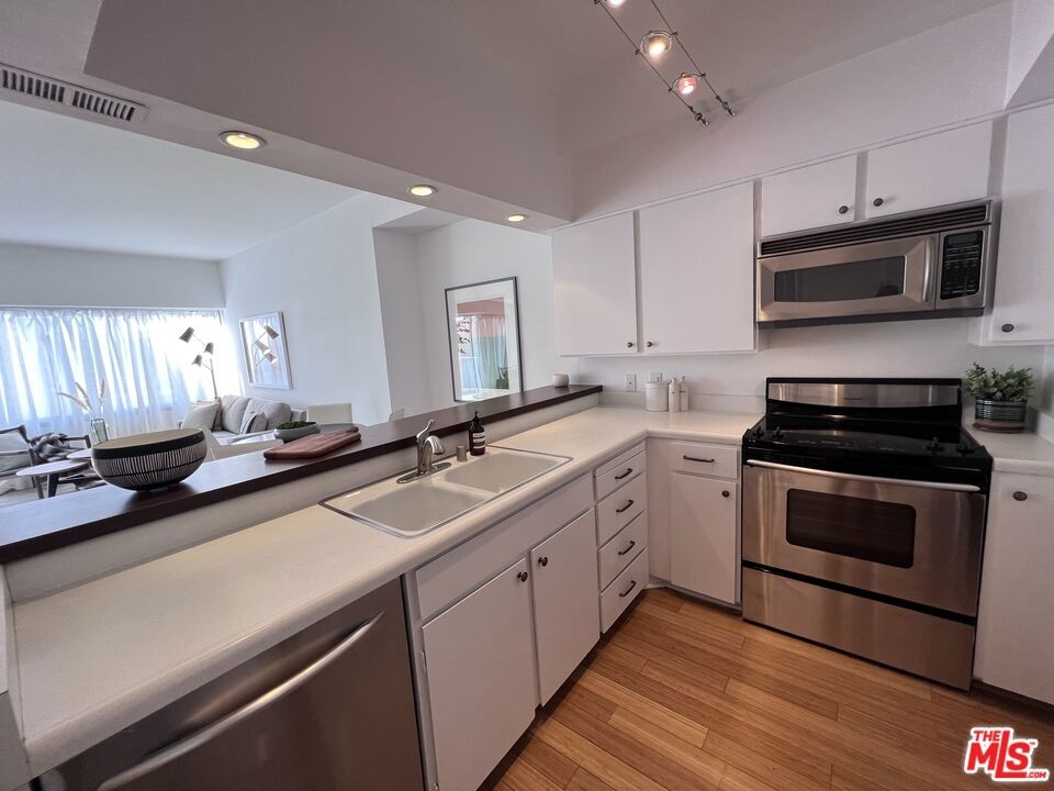 Welcome to this updated beautiful and bright one bedroom / one bath condo in the iconic Hollywood Versailles Tower! This west facing sun filled home has been freshly painted throughout and features brand new carpet, linen curtains and kitchen upgrades! Additional features include bamboo wood flooring, open kitchen with breakfast bar and a spacious living room opening to your large sun filled private balcony. Enjoy views from your patio of the city, palm trees, the pool, mountains and on a clear day, you can see Catalina! Building features include: Updated brand new lobby, 24-hour security, concierge, valet parking and assigned designated parking, large newly redone fitness center, exercise pool, outdoor BBQ, lounge area with fire pit, conference room and game room! This very well maintained and secure building was once home to many Hollywood Stars. Centrally located near West Hollywood, Hollywood, Studio City, Beverly Hills, Runyon Canyon, the Metro line, and many popular restaurants and shops! This special unit in this dream location is a wonderful place to call home. Must see!