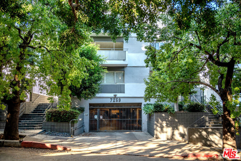 Spacious flat with wrap around balcony tucked into a boutique building in the Hollywood Hills. Hidden amongst the trees in the foothills near Runyon Canyon and the Hollywood Bowl, enter the home through double doors to find a galley style remodeled kitchen with quartz countertops and stainless steel appliances. That looks out to the formal dining area, adjacent to the living room featuring a sliding glass door to a large covered balcony. The primary bedroom suite has en suite bathroom and fully built out walk-in closet, and another glass slider out to the extended balcony. Past the guest bathroom is a hallway lined with extra storage closets and the guest bedroom, which features its own sliding glass door and balcony. The unit comes with two side-by-side parking spaces in the gated community garage, and in-unit laundry can be added with HOA approval. The mid century building features a community pool and hot tub shielded from the street by mature trees, agave, and foliage. Incredible location just steps to the entrance of Runyon Canyon and just a short walk to Wattles Park, the Hollywood Bowl, Magic Castle, Roosevelt Hotel, and Sunset Boulevard. Also walking distance to grocery stores, restaurants, bars, coffee shops, a metro stop, and around the corner from the Sunset Strip. Rare size with multiple balconies in a 15 unit building tucked into the tree-lined foothills of Hollywood.