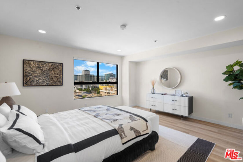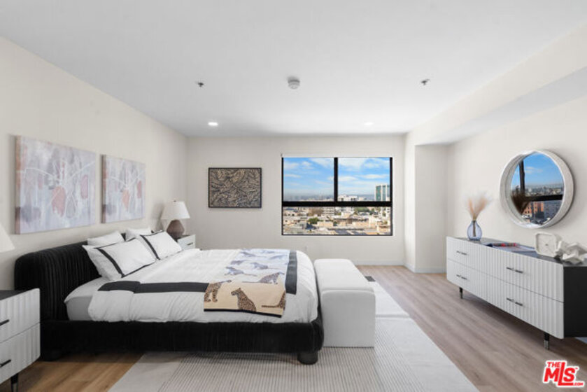 Breathtaking view of almost entire Los Angeles area including Santa Monica, Culver City and West Hollywood! One of the most luxurious and desirable high-rise condominium "The Richmore Garden" in Mid-Wilshire / Koreatown area. The Richmore Garden is located in the prime location as it is only a block away from Wilshire Blvd. and Normandie Ave., close to all kinds of transportation, entertainments, banks, restaurants, markets, hotels and more. Unit 802 offers spacious Masterbedroom with a huge walk in closet and very bright view, another good size second bedroom with plenty of closet spaces. Newly upgraded bathrooms come with both shower booth and tubs, brand new toilets, cabinets and lighting fixtures. The unit also boasts classic hardwood styled vinyl water proof flooring, huge size quartz island top, trendy open and modern kitchen style, and also fully equipped stainless appliances. You will be under a safe protection with a security guard on-site.