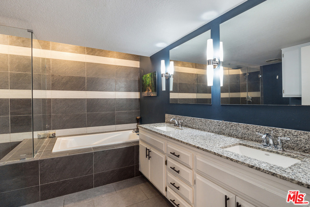 Located in one of LA's most coveted neighborhoods, this stunning 2 + 2.5 condo in approximately 1,450 sf is move in ready! Soaring ceilings and newer wood flooring in the main living areas. This private rear-facing unit has tons of windows that flood the space with natural light. The unit boasts a split bedroom floor plan with a large kitchen that has tons of cabinets for storage, granite counter tops, stainless steel appliances, and custom a backsplash. The living room offers a cozy wood burning fireplace, a walk-out sitting patio and huge walls for artwork. The generous Master Suite has a walk-in closet, room for a King Size bed and also has direct access to the private back patio. The spa-like Master Bath provides dual sinks, ample counter space and a separate tub and shower. The home has in-unit laundry, secure gated side by side parking and plenty of guest parking. The building has substantial reserves and low HOA's, which include earthquake insurance!