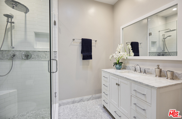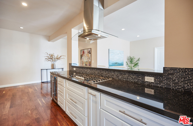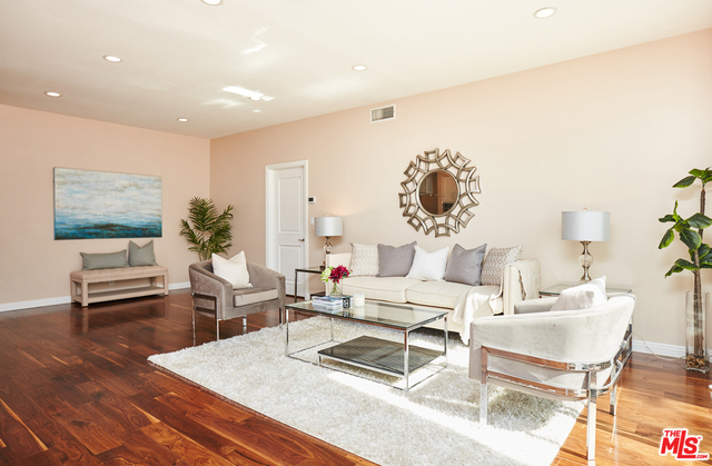 Top floor corner 2 Bed 2 Bath unit with only one common wall. Completely remodeled recently with the finest materials. Open spacious floor plan, dining area, office and large living room with fireplace opens to balcony. Beautiful walnut wood floors throughout the unit. Stunning kitchen with granite counter tops, new stainless steal appliances, washer/dryer and open breakfast bar. Master bedroom with spacious walk in closet. Master bathroom with all Italian carrara marble and a separate water closet. Newer central air conditioning and heating. Two parking spaces and guest parking. Great building with heated pool, spa, gym, community room and low monthly HOA for all the fabulous amenities. Prime Beverly Hills adjacent location, walk distance to Trader Joe's, Cedars Sinai, Beverly Center and many fine restaurants.