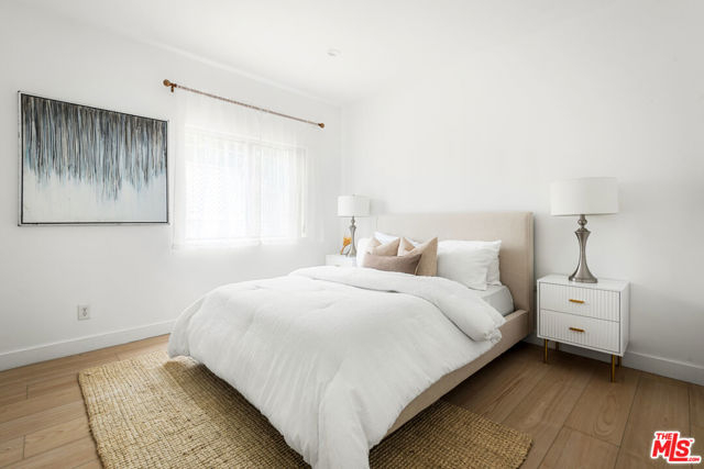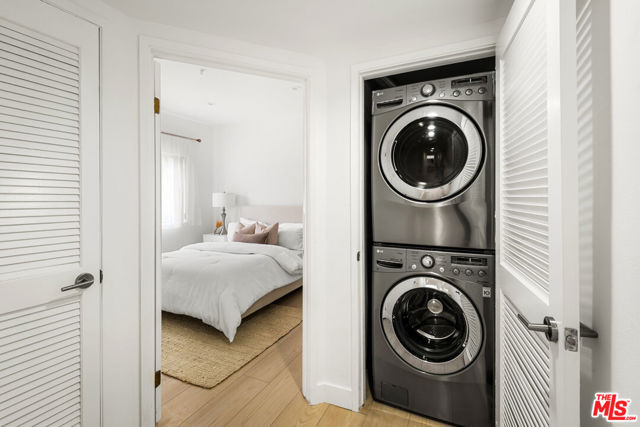 Welcome to this beautifully upgraded 2-bedroom, 2.5-bath condo located in the prestigious and sought-after Windsor Village neighborhood of Hancock Park. Nestled in a serene, tree-lined setting directly across from Harold A. Henry Park, this home offers both tranquility and prime access to nearby Larchmont Village, Miracle Mile, and Koreatown. Situated on the first floor and accessed via a charming open-air courtyard, this well-maintained residence features a bright and spacious layout. The inviting living room centers around a sleek, modern fireplace and flows seamlessly into a flexible dining area perfect for entertaining or setting up a home office. The kitchen is both stylish and highly functional, boasting brand-new stainless steel refrigerator and dishwasher, quartz countertops, a matching backsplash, and thoughtful custom details. These include a foot-activated pull-out trash drawer, a pull-out spice rack, and a corner lazy Susan enhancing both aesthetics and usability. Designed with a neutral, organic palette to evoke a spa-like calm, the space offers the ideal backdrop for a range of furnishing styles. Both generously sized bedrooms feature en suite bathrooms and ample closet space, including a custom-designed closet in the primary suite. All three bathrooms feature brand-new, modern-style toilets with sleek covered bases for easy cleaning and a polished look. Additional features include in-unit laundry, a guest powder room, and smart home upgrades such as a Nest thermostat and Ring doorbell camera. Situated within an award-winning school district, this home offers access to top-tier educational opportunities. Enjoy the peace and quiet of a well-kept, low-traffic neighborhood with plenty of street parking for guests. The unit is elevated above the secured subterranean garage and includes two dedicated tandem parking spaces.