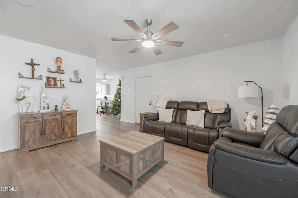 A renovated top-level end unit with no shared walls, no neighbor above, and designated parking directly below, this home offers that true townhouse-style living you won't find elsewhere.As you step inside, the home immediately feels open, bright, and inviting. Positioned on the second level of a gated community, the corner unit is filled with natural light from windows in every room, creating an airy, uplifting atmosphere throughout the day. The thoughtfully updated kitchen anchors the open floor plan with ample cabinetry, generous counter space, and stainless steel appliances, flowing effortlessly into the dining and living areas. From there, the spacious living room opens to a private balcony, extending the living space outdoors and allowing fresh air and sunlight to pour in, making both everyday living and relaxed entertaining a breeze.The oversized primary suite is a true retreat, complete with a large walk-in closet and a beautifully updated en-suite bathroom featuring a walk-in shower and in-unit washer and dryer, an especially rare feature for homes in this community. Down the hallway, two additional bedrooms offer comfortable proportions, excellent natural light, and flexibility for guests, home office, or creative space. The tastefully updated full guest bathroom completes the home.Additional highlights include central air and heat, modern ceiling fans, and two covered parking spaces directly beneath the unit, allowing you to conveniently park and walk directly upstairs into your home.Turnkey, private, and as functional as it gets, this is elevated condo living in the heart of Panorama City.