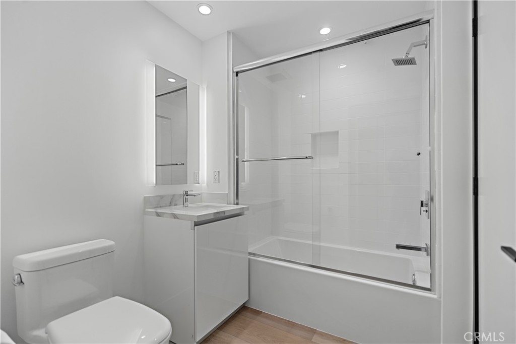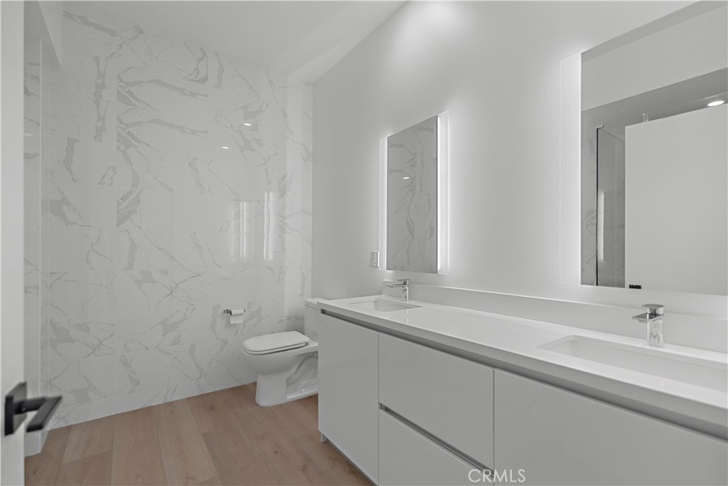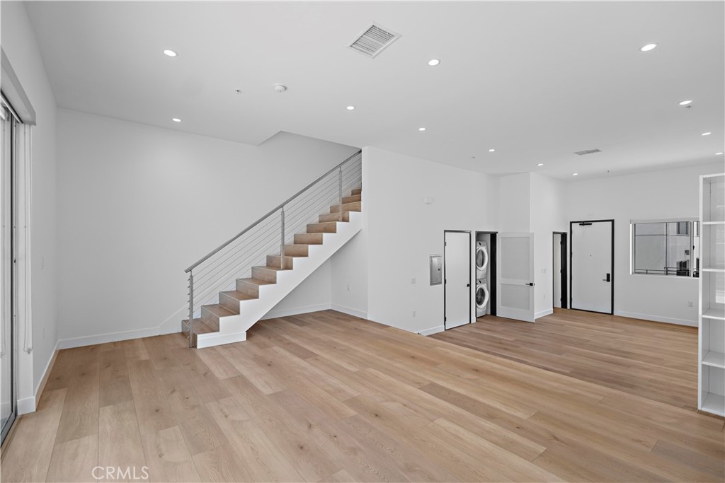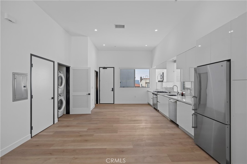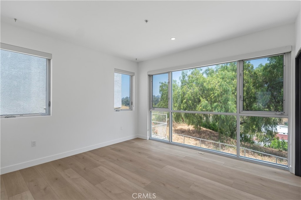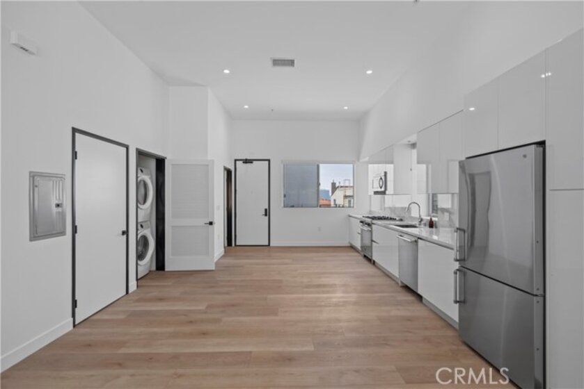 Welcome to Residence 318 at 957 FIG- a modern top-level, end-unit, two-story condominium built in 2021. This 2-bedroom, 2.5-bath home features a bright open-concept layout with a light-filled living area, large glass patio doors, and a seamless flow into the dining space and modern kitchen. Both bedrooms are located upstairs, each with a walk-in closet and a private en-suite bathroom. The upper level offers open skyline views, adding a sense of space and natural light. The secure-access community consists of a limited number of residences and includes two-car parking with EV charging access, a fitness room, an outdoor BBQ area, a locked mailroom, and on-site trash and recycling facilities. Tucked into a quiet hillside pocket, yet just minutes from all the action, the property is less than 5 minutes from Crypto.com Arena, Dodger Stadium, and the vibrant energy of Downtown LA!